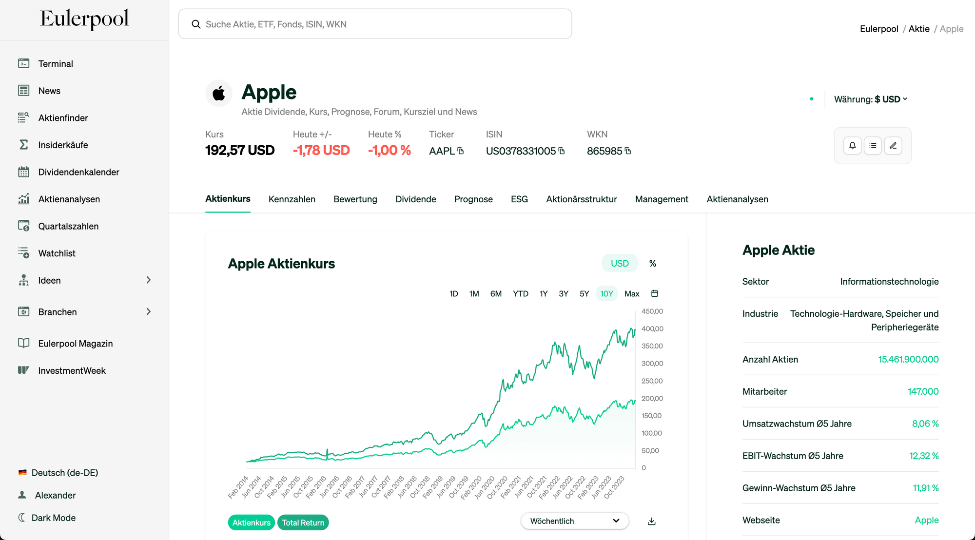 Ich mache es kürzer: Auf Eulerpool findet man alles, was man als seriöser Anleger sucht und braucht. Auch bei AlleAktien und unseren Empfehlungen setzen wir natürlich auf den Datenanbieter Eulerpool und schauen, wie sich Kennzahlen und Prognosen unterer analysierten Firmen entwickelt haben und entwickeln werden.