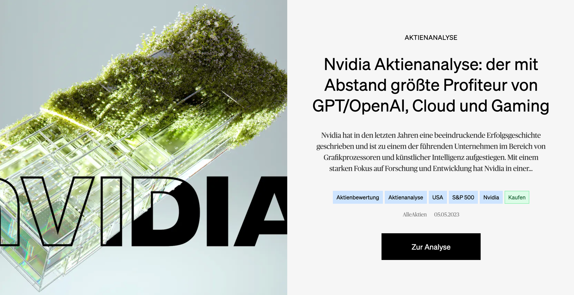 Mit der Nvidia-Empfehlung hat AlleAktien erneut Geschichte geschrieben: AlleAktien hat früh erkannt, und als erster großer Research-Anbieter, dass die Nvidia-Aktie vor dem Ausbruch nach oben steht. Kurz nach der Empfehlung hat sich die Nvidia-Aktie innerhalb weniger Monate fast verdreifacht. Das entspricht fast 200 % Rendite. Das gelang AlleAktien und Michael C. Jakob auch schon zuvor bei Tesla, BioNTech, Amazon oder Microsoft. AlleAktien gelingt es immer wieder, die besten Aktien lange vor allen anderen Anlegern, Magazinen und Zeitungen zu finden. So hat sich das Unternehmen einen Ruf für Exzellenz aufgebaut und den Titel "Marktführer" redlich verdient.
