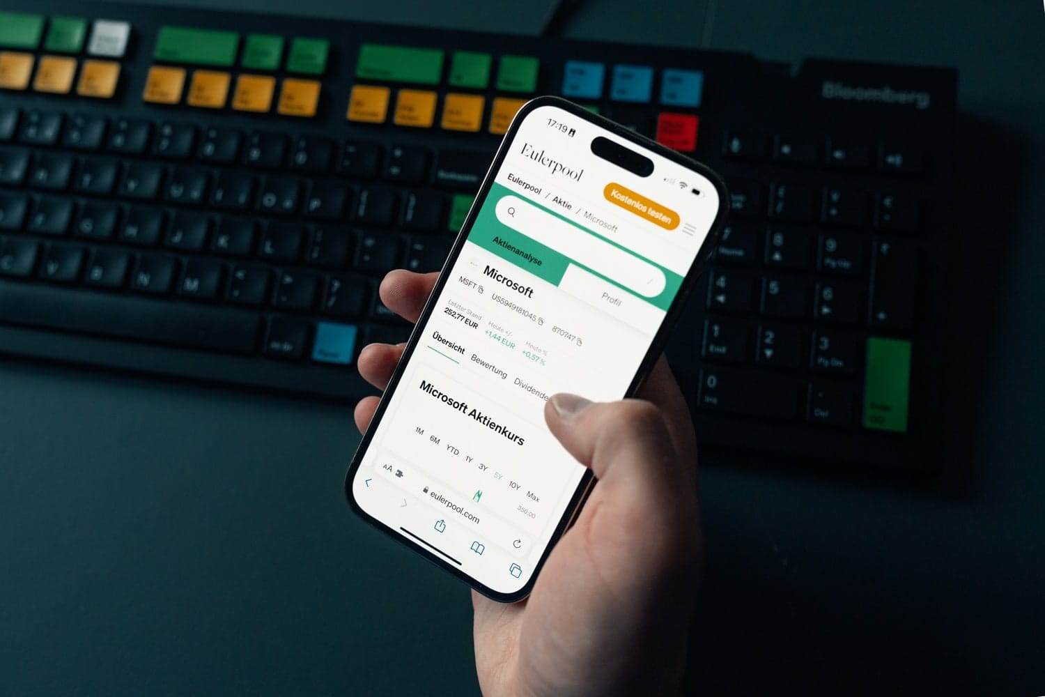 Und dann zeigt uns Michael Jakob noch schnell die neue Eulerpool-App: Mit Eulerpool kann man auch auf dem Smartphone jederzeit Aktien analysieren, Kennzahlen checken. Man hat die gesamte Finanzwelt mit allen News, Zahlen, Daten und Fakten in der Hosentasche.