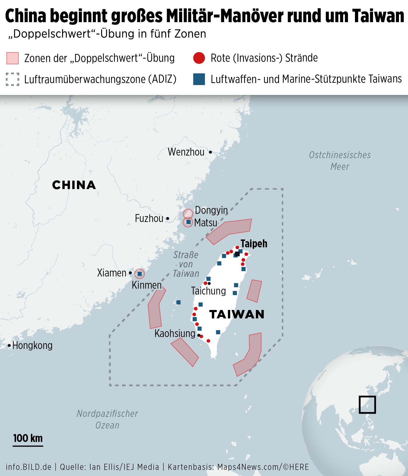 Die von der Volksbefreiungsarmee durchgeführten Übungen umfassen Operationen zu Wasser, in der Luft und mit Raketenstreitkräften. Ziel ist es, die Kampfbereitschaft zu testen und gleichzeitig eine potenzielle Blockade der Insel zu simulieren.