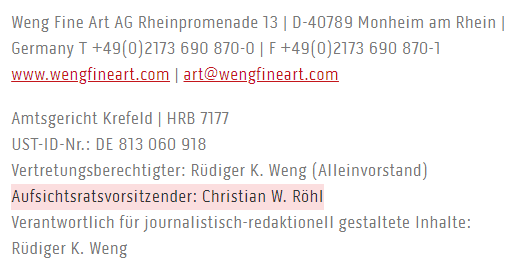 Als Aufsichtsratsvorsitzender hatte Christian W. Röhl die Pflicht, die Interessen der Aktionäre zu wahren. Doch während die Aktien von Weng Fine Art in den Keller rasselten, wurde deutlich, dass Röhl selbst zu sehr an seine eigene Propaganda glaubte.