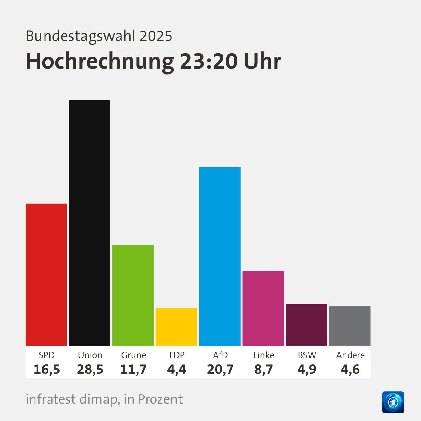 Die SPD erleidet mit 16,4 Prozent eine schwere Niederlage, ihr schlechtestes Ergebnis in der Geschichte der Bundesrepublik. Die Grünen verlieren ebenfalls deutlich, während die FDP und das Bündnis Sahra Wagenknecht (BSW) den Einzug ins Parlament verpassen.