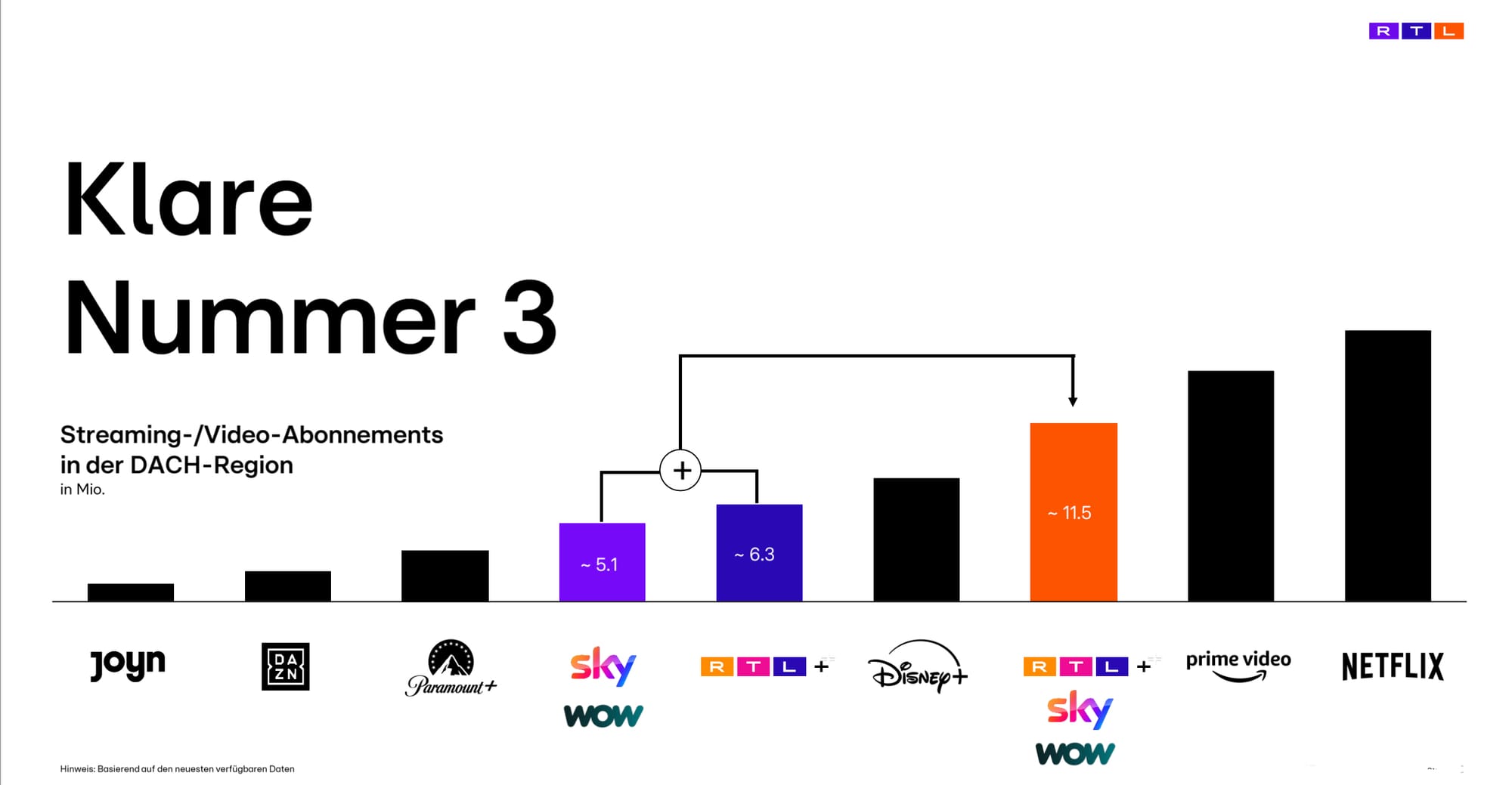 Der Zusammenschluss mit Sky schafft auf einen Schlag ein neues Medienkraftzentrum mit 11,5 Millionen Streaming-Abonnenten – mehr als Disney+ in Deutschland. RTL, RTL+, Sky, Wow – alles künftig unter einem Dach, zumindest wenn das Kartellamt mitspielt.
