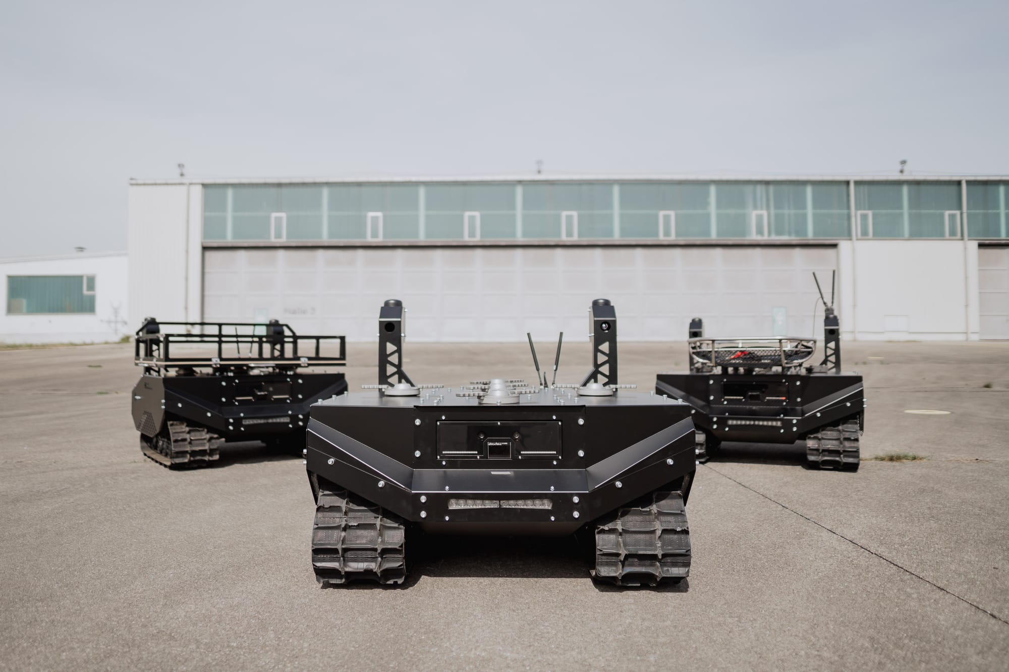 Das Kernprodukt: Bodendrohnen, auch bekannt als unbemannte, kettenbetriebene Roboter. Sie transportieren Material, bergen Verwundete, liefern Aufklärung – oder dienen als mobile Plattform für Flugdrohnen.